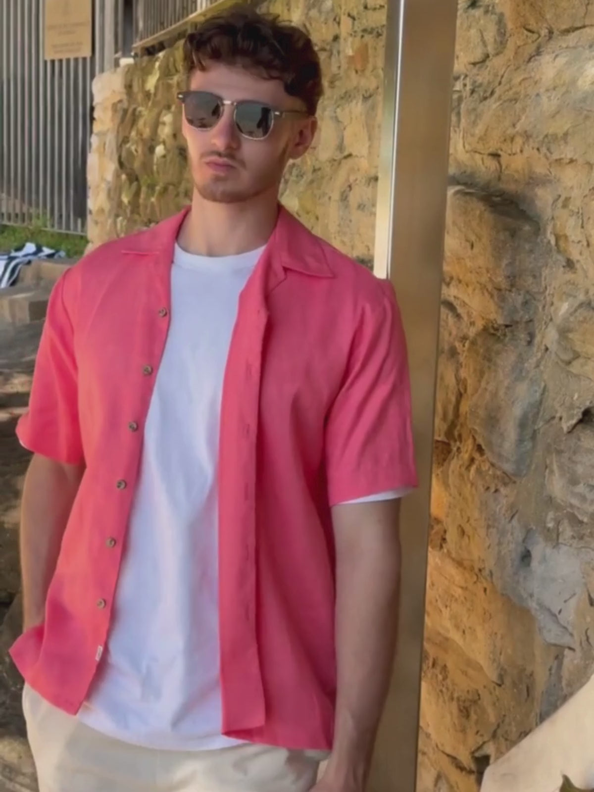 Australian Made Short Sleeve Shirt with One Piece, Lay Back Collar. Trims and buttons may vary.