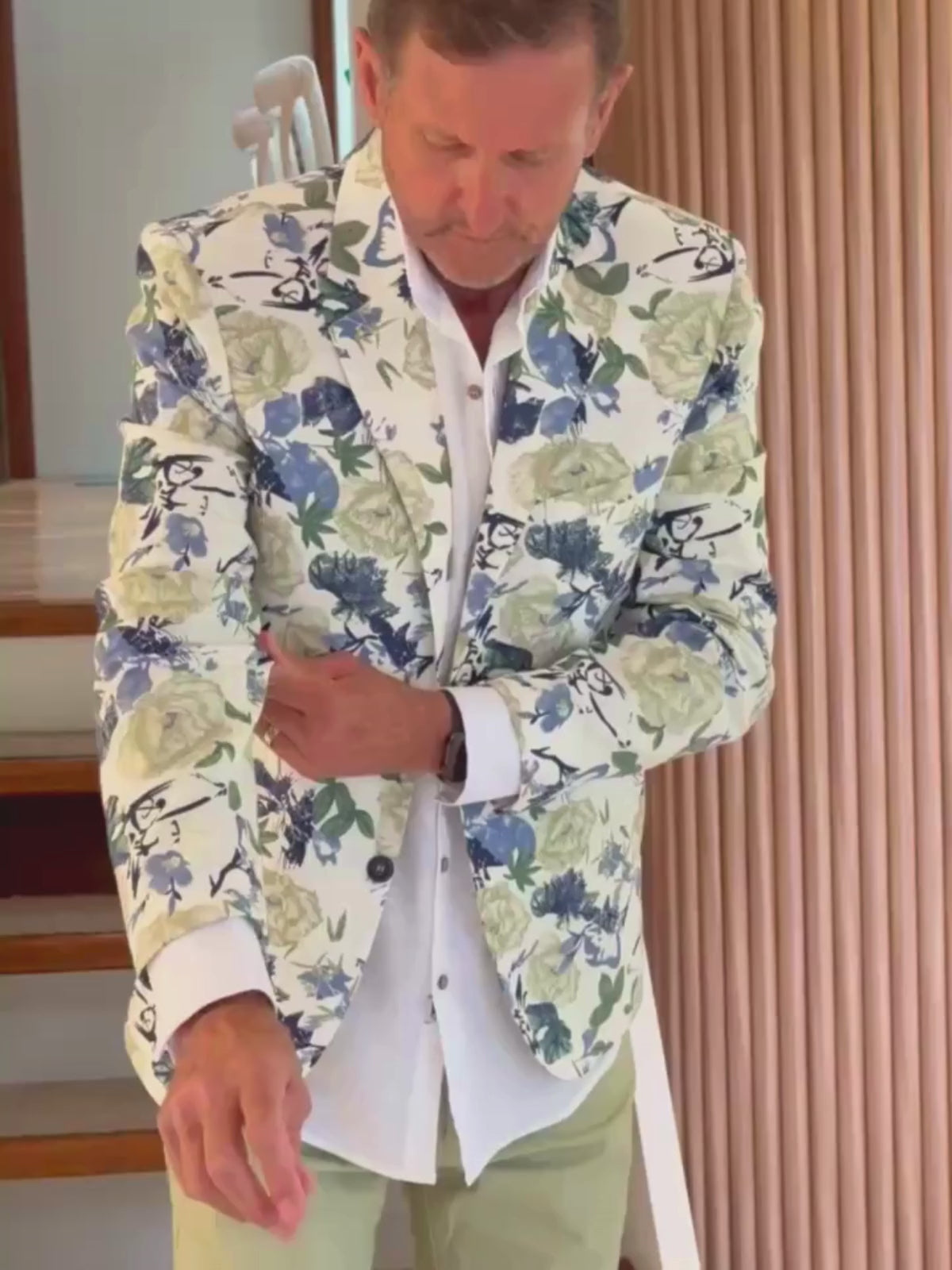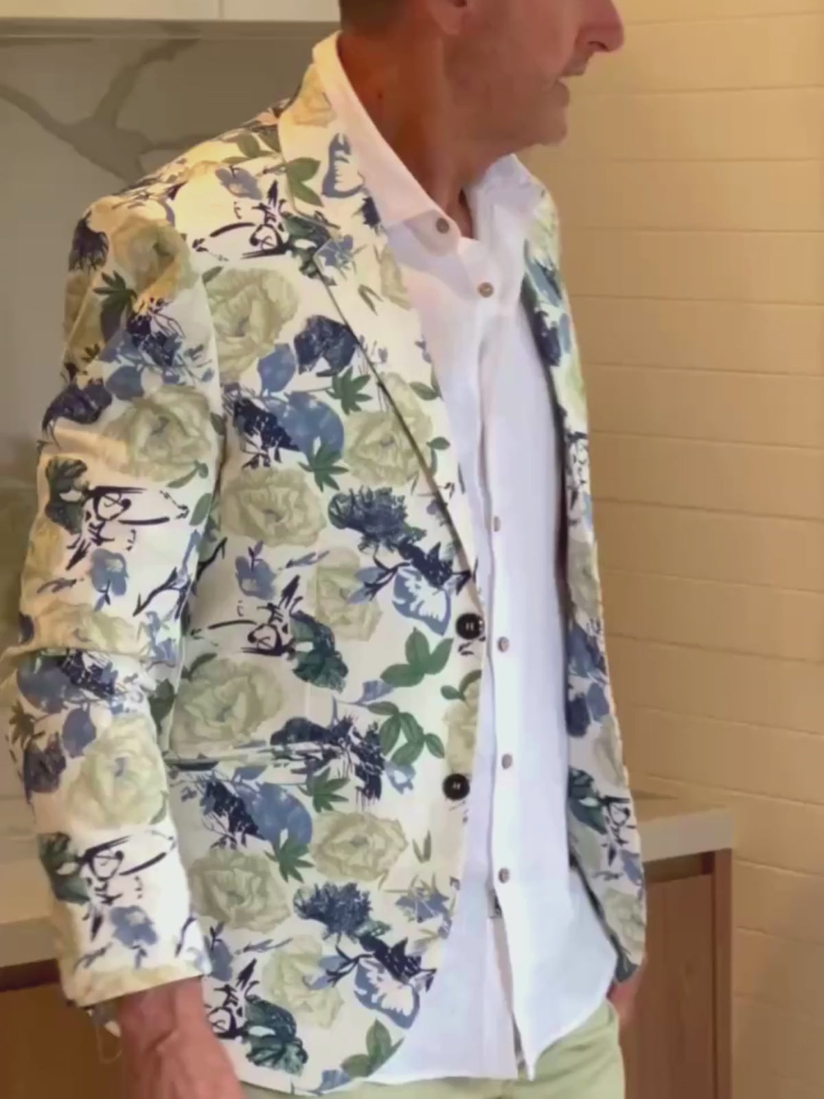 Refined yet effortlessly fresh, the Niseko Linen Jacket is a must-have for the modern gentleman. Featuring a cream base adorned with a sophisticated green and blue floral print, it blends timeless elegance with a relaxed, tropical flair.