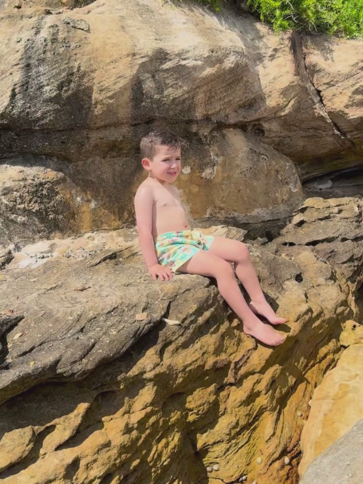 Australian Made Boys Swim Short, with elastic waistband, and back pocket.