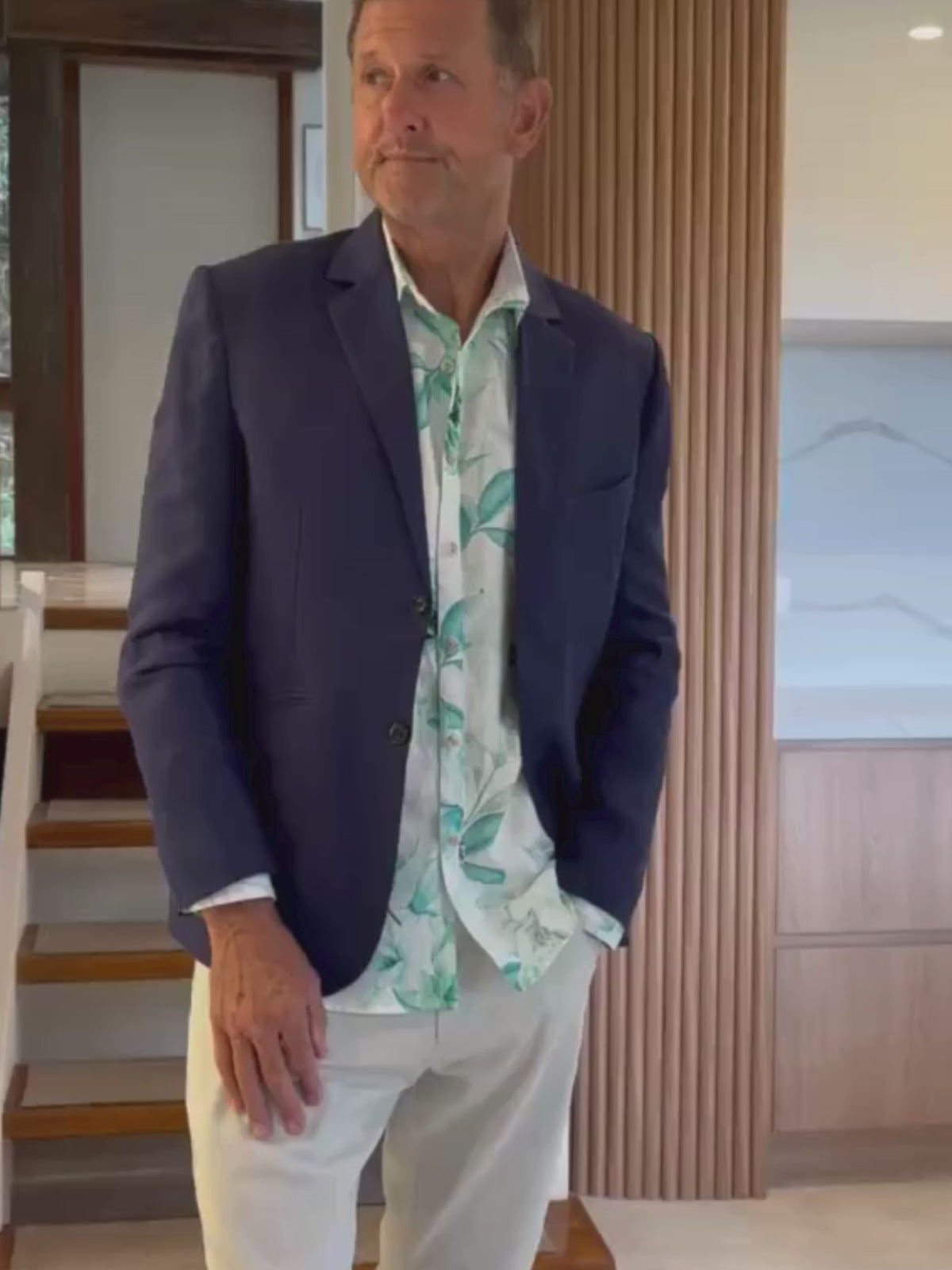 A structured jacket in a classic Navy linen, fully lined with inside pocketing, buttons and linings may vary.