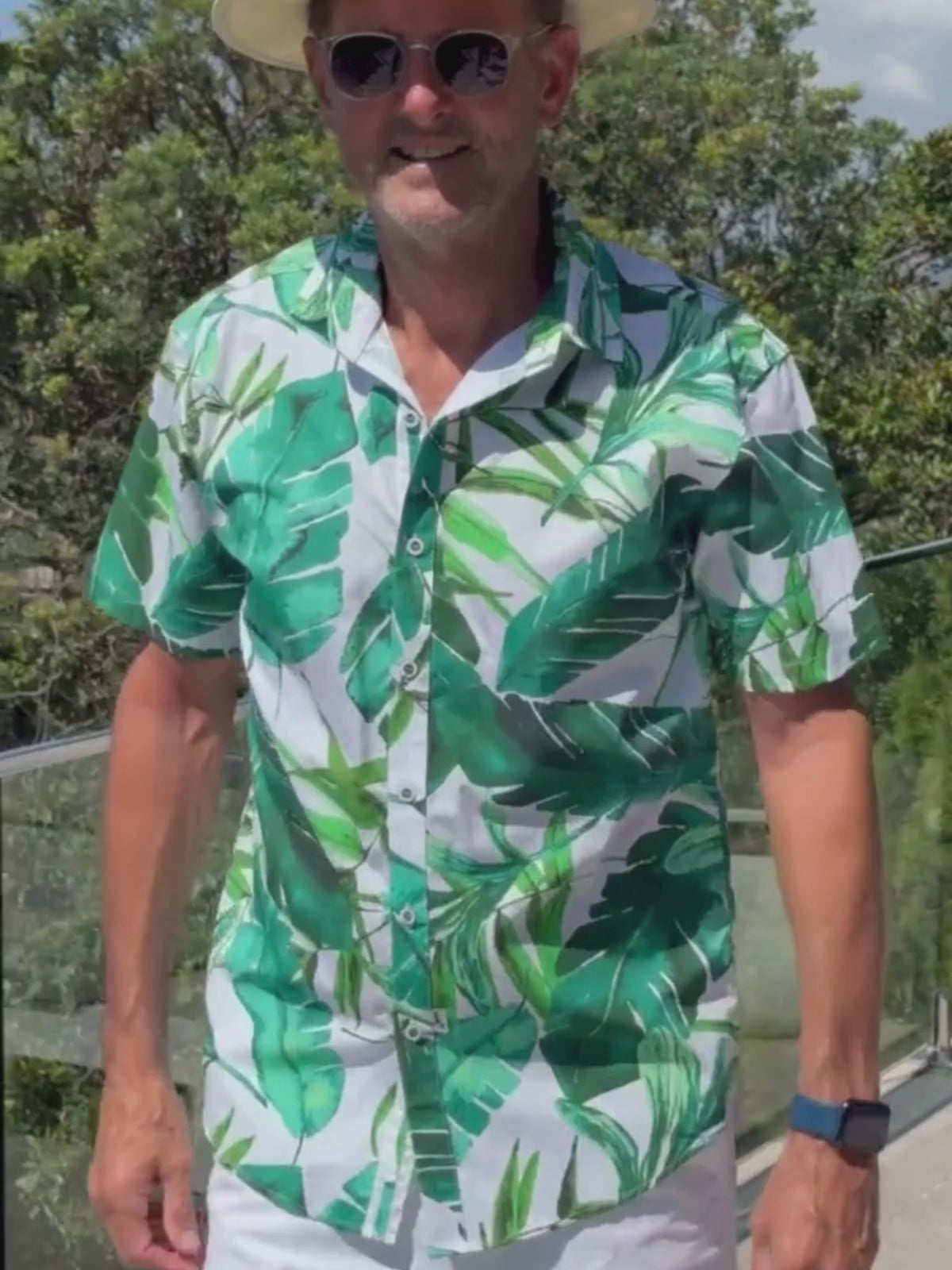 Palmgrove Floral Cotton S/S Big Mens Shirt - Green